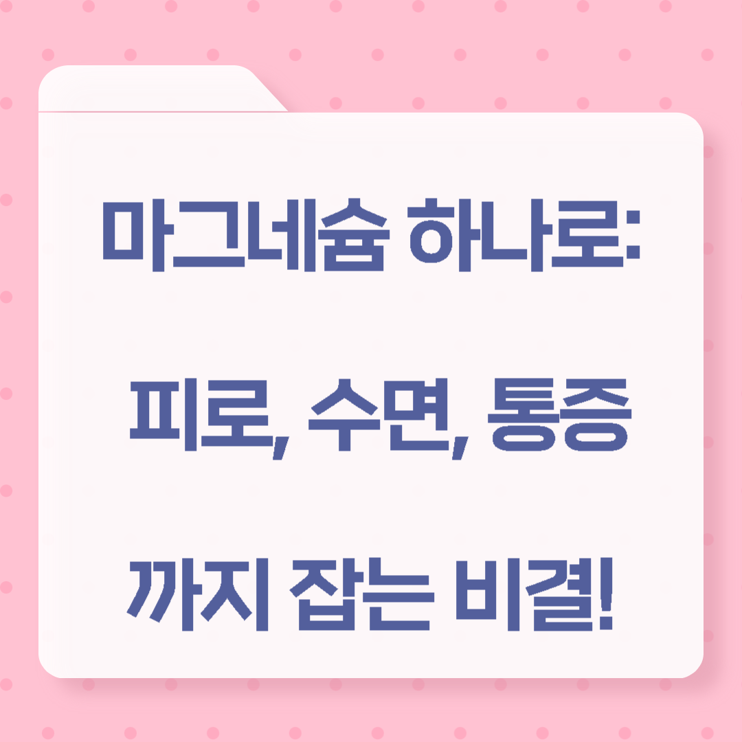 마그네슘은 근육 이완, 수면, 방광 안정, 두통 완화 등 여러 면에서 당신의 삶을 ‘조금 더 나은’ 방향으로 바꿔줄 수 있어요.